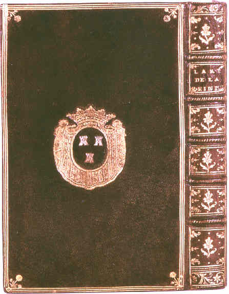 (Abbé de). - L'Ecole d'Uranie ou l'Art de la peinture. Paris, Le Mercier, 1753. In-12°, maroquin vert olive, triple filet doré encadrant les plats. Aux armes, argentées, de MADAME